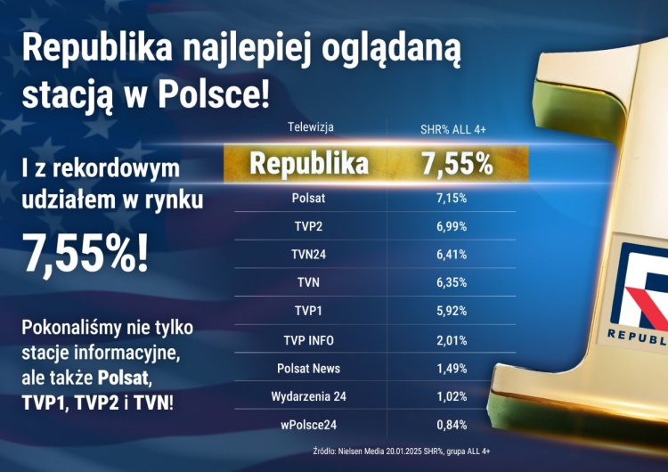 Rekord Telewizji Republika! Pokonała Polsat, TVP i TVN