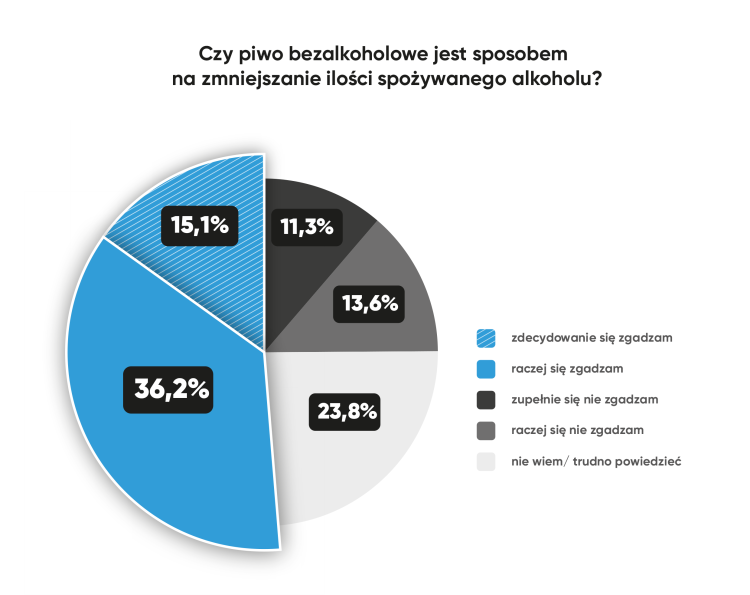• Ponad połowa Polaków (51,3%) uważa, że piwo bezalkoholowe pomaga w ograniczeniu spożycia alkoholu.