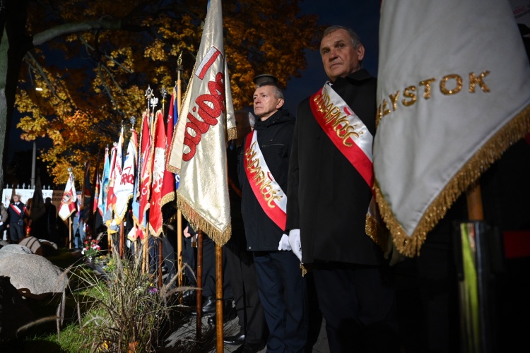 W trakcie Mszy przy grobie ks. Popiełuszki niezmiennie, jak co roku, pełnili wartę członkowie Prezydium Komisji Krajowej NSZZ "Solidarność" z Piotrem Dudą na czele.