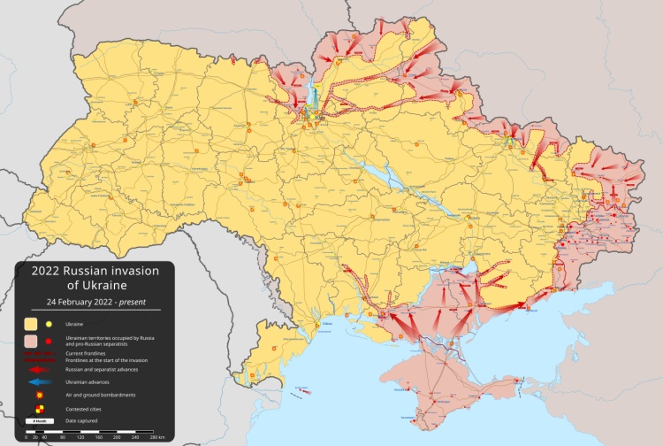 [Inwazja Rosji na Ukrainę. Główne kierunki natarcia. Źródło: Wikipedia CC BY-SA 4,0 Viewsridge]