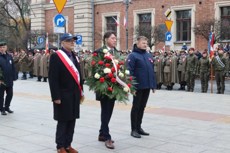Krakowskie obchody rocznicy odzyskania niepodległości rozpoczęły się od złożenia kwiatów na sarkofagu Marszałka Józefa Piłsudskiego w Krypcie Srebrnych Dzwonów i Mszy św. za Ojczyznę w odprawionej katedrze na Wawelu przez abpa Marka Jędraszewskiego.