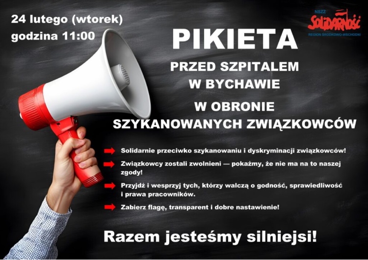 Związkowcy z „S” będą pikietowali przed siedzibą szpitala w Bychowie